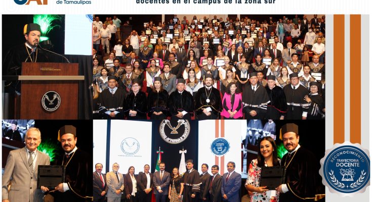 El rector Guillermo Mendoza Cavazos presidió en el aula magna del CU Tampico la entrega de diplomas y preseas al personal académico universitario por su labor y dedicación en la …