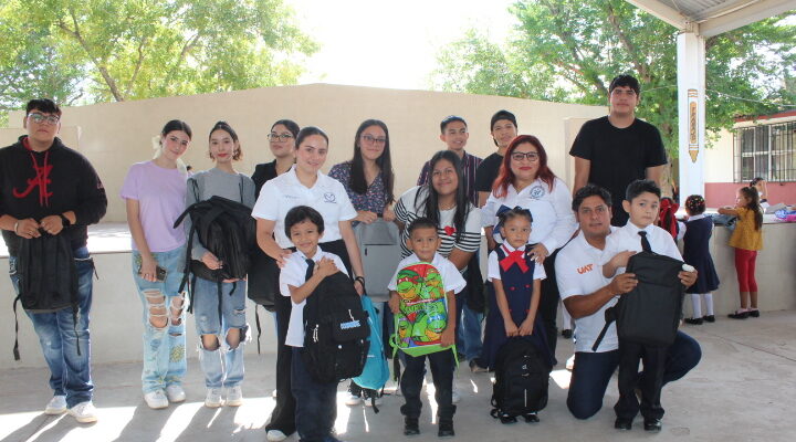 Como parte de la colecta “Una mochila llena de oportunidades”, que la Universidad Autónoma de Tamaulipas (UAT) llevó a cabo en las diferentes sedes en el estado, la comunidad universitaria de Río Bravo entregó útiles escolares a estudiantes de primer grado de la Escuela Primaria Manuel González, de esta ciudad fronteriza.