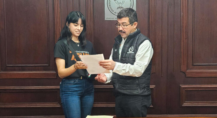 Al felicitar a la estudiante de la UAT, Dámaso Anaya destacó su esfuerzo y dedicación al ser reconocida a nivel nacional, y convertirse en un referente para toda la comunidad universitaria.