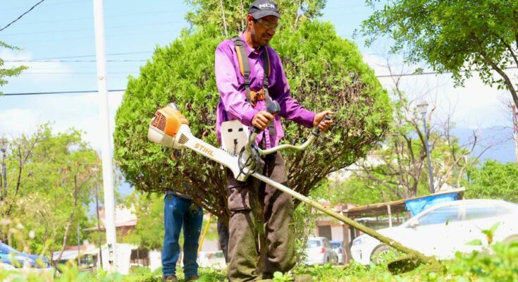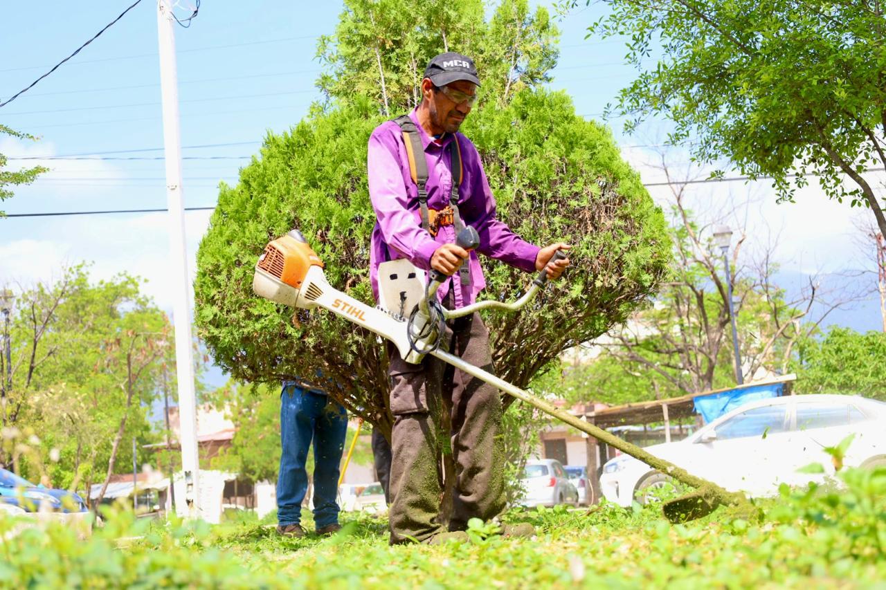 Con acciones de poda de árboles y palmas, limpieza de parques y jardines, personal de la Secretaría de Servicios Públicos del Municipio, inició en la plaza pública Héroes de la Independencia, y continuó en avenidas 20 de Noviembre, José Sulaimán, Central y Tamaulipas.
