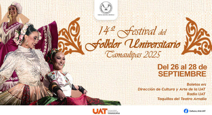 En el marco de su compromiso con la difusión de la cultura y las artes, y la vinculación con la sociedad, la Universidad Autónoma de Tamaulipas (UAT) organiza el 14.º Festival del Folklor Universitario Tamaulipas 2025, el cual se llevará a cabo del 26 al 28 de septiembre, en Ciudad Victoria.
