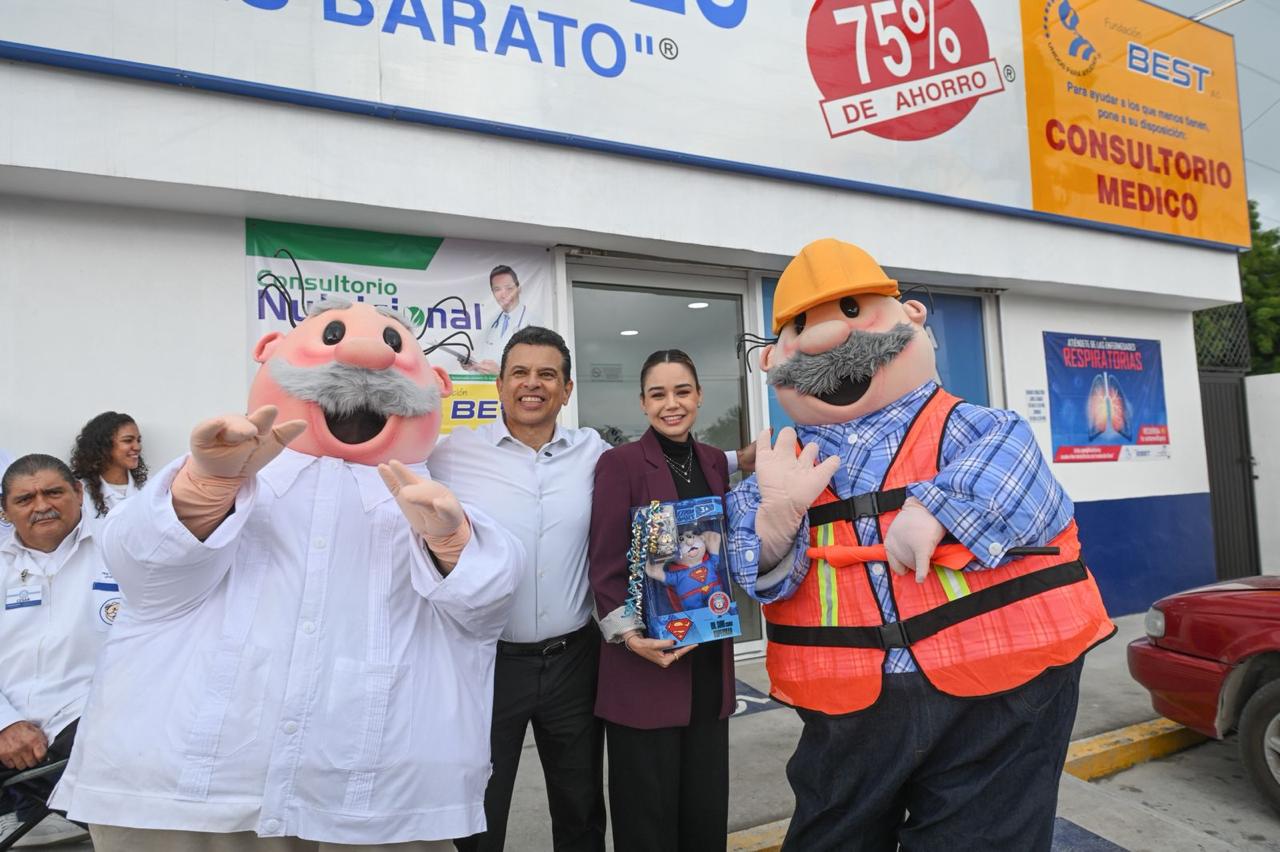Lucy de Gattás y Eduardo Gattás, alcalde de Victoria, entregaron de manera personal la concesión de distinción a Mayra Betancourt, propietaria de la farmacéutica filial El Olivo; y la gerente general Itzel Sánchez, de Bodega Aurrera sucursal Rivera.