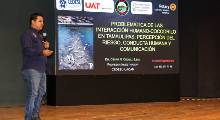 La Universidad Autónoma de Tamaulipas (UAT) llevó a cabo la conferencia “Problemática de las interacciones humano–cocodrilo en Tamaulipas: percepción del riesgo, conducta humana y comunicación social”, un espacio de reflexión académica que vinculó el conocimiento científico con los desafíos sociales y ambientales del entorno regional.