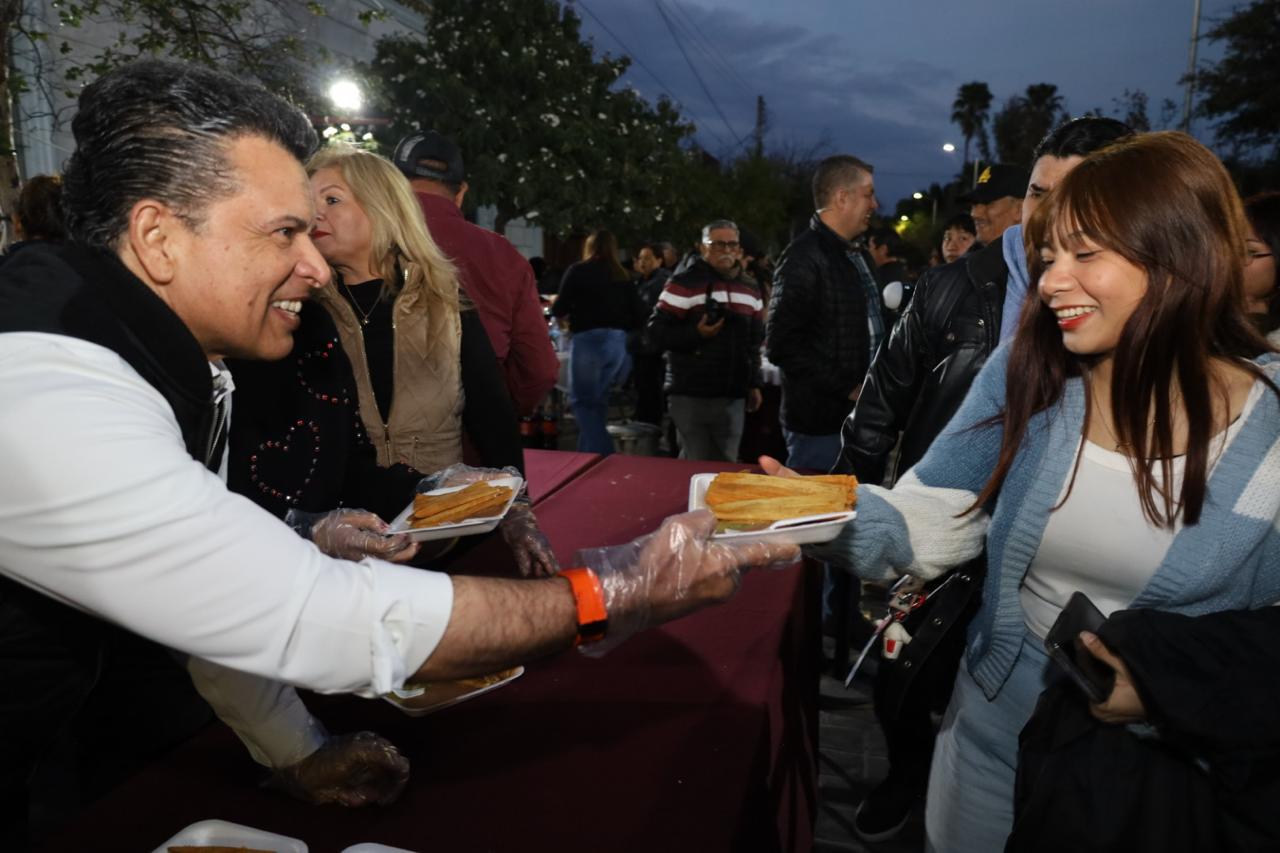 Con una tamaliza, el alcalde de Victoria Lalo Gattás y su esposa Lucy de Gattás celebraron este domingo el Día de la Candelaria con familias que asistieron al paseo 17 Te Quiero Más.