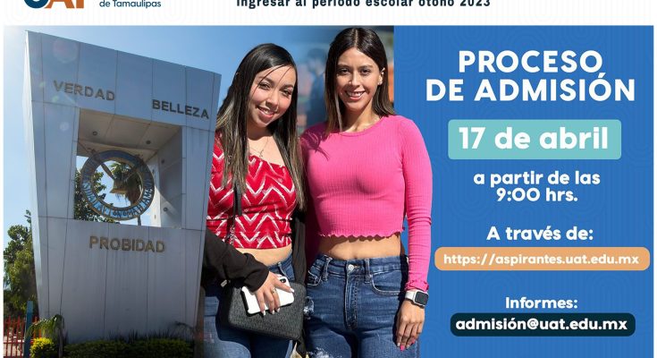 La Universidad Autónoma de Tamaulipas (UAT) reanuda este lunes 17 de abril sus actividades administrativas y al mismo tiempo inicia el proceso de admisión para el período escolar de otoño 2023 en todas las dependencias académicas de esta casa de estudios distribuidas en las zonas centro, norte y sur del estado.