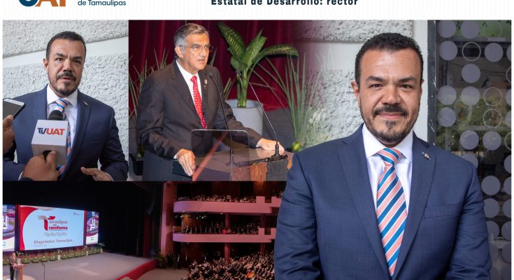 El C. P. Guillermo Mendoza Cavazos destacó su reconocimiento a las políticas estratégicas del gobernador Américo Villarreal Anaya y reafirmó el compromiso de la Universidad Autónoma de Tamaulipas (UAT) de sumar sus esfuerzos a las prioridades del Plan Estatal de Desarrollo (PED) 2023-2028 para lograr la transformación de Tamaulipas.