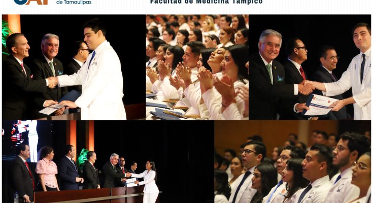 Durante la ceremonia realizada en el Teatro Metropolitano de Tampico, los estudiantes que culminaron sus estudios de licenciatura recibieron la constancia de egreso, y en fechas posteriores recibirán su título de Médico Cirujano.