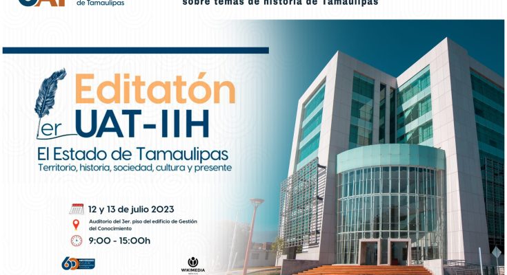 Durante los días 12 y 13 de julio de este año se llevará a cabo la primera edición del Editatón Educativo, un proyecto que realiza la Universidad Autónoma de Tamaulipas (UAT) por medio del Instituto de Investigaciones Históricas (IIH) en coordinación con Wikimedia México, organización matriz en nuestro país de la gran enciclopedia libre Wikipedia.