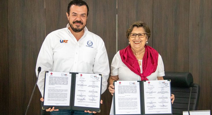 La Universidad Autónoma de Tamaulipas (UAT) y la delegación estatal de la Cruz Roja Mexicana formalizaron un convenio de colaboración que permitirá a los prestatarios de servicio social de las carreras de Medicina, Enfermería y Psicología de Matamoros apoyar en las acciones que realiza la benemérita institución.