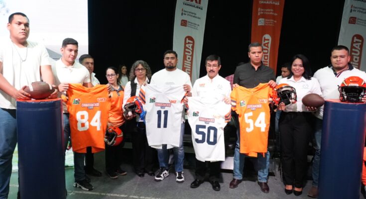 En este encuentro con estudiantes universitarios, Dámaso Anaya Alvarado hizo entrega de material deportivo al equipo que participará en la Liga Mayor de Futbol Americano a partir del mes de septiembre, y que marcará el regreso de la UAT al torneo de la Organización Nacional Estudiantil de Futbol Americano, la ONEFA.